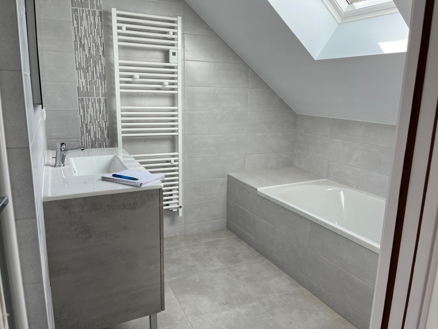 A l'étage, une chambre donnant sur terrasse, salle de bains, un wc.