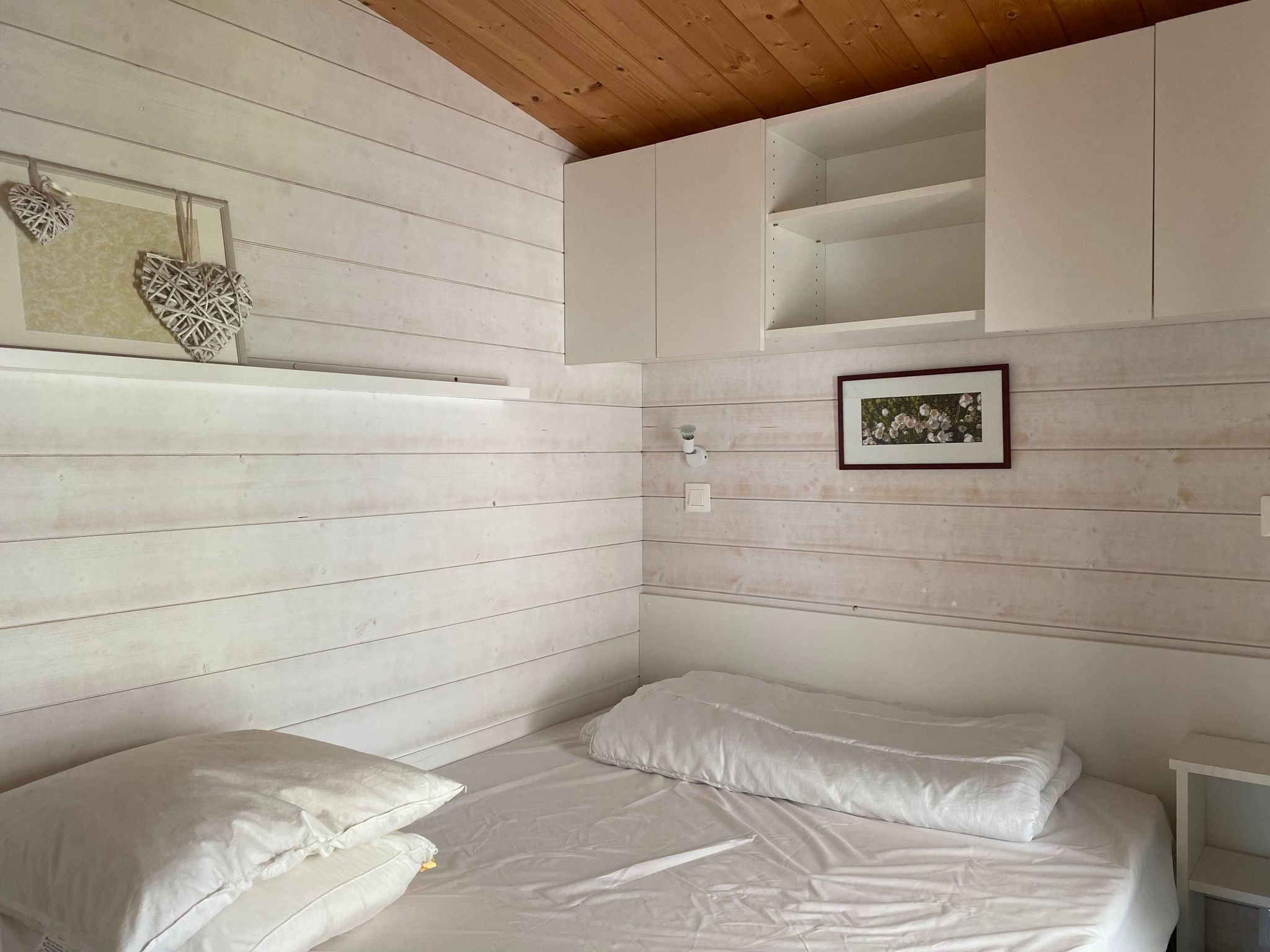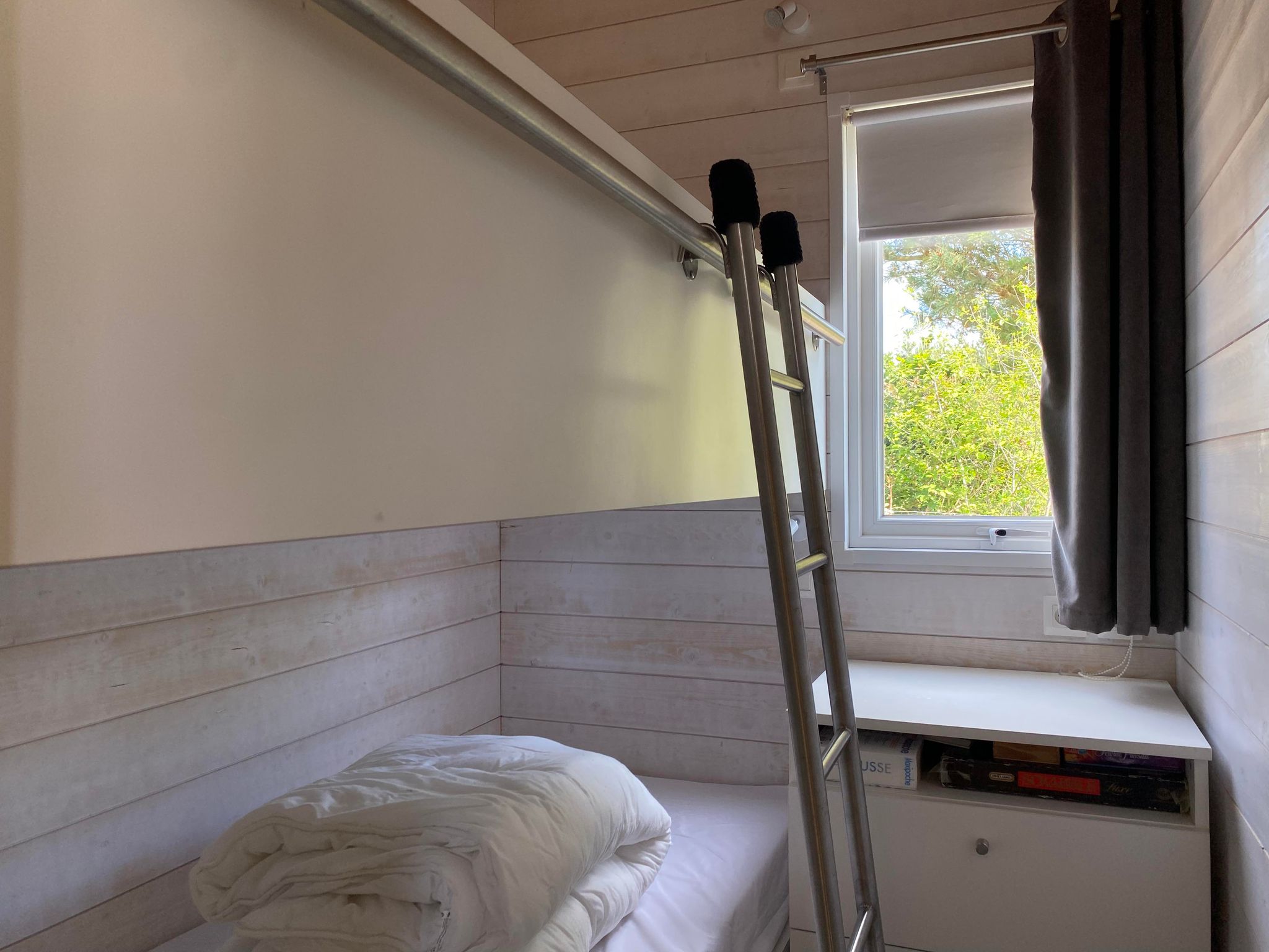 Passez d'agréables vacances au calme et proche de la mer dans ce mobil home composé d'une pièce de vie avec coin cuisine, une chambre avec 1 lit 140, une deuxième chambre avec 2 lits 90 superposés, une salle d'eau et un wc séparé. Une terrasse couverte prolonge cette habitation pour agrandir l'espace de vie. Le terrain de 230m² est exposé plein Sud, vous pourrez donc profiter du soleil tout au long de vos journées ! Des chaises longues, une plancha et un transat sont à votre disposition pour embellir vos vacances. Le ménage devra être réalisé par le locataire.