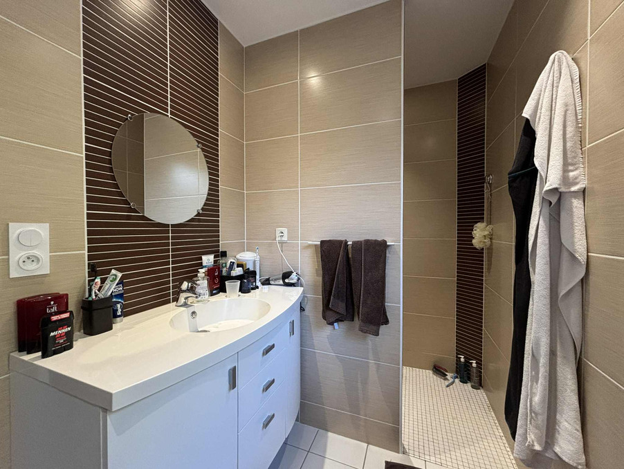 À l'étage : Une grande chambre avec dressing, deux autres chambre de plus de 12m2, une salle de bains avec baignoire, douche et double vasques ainsi qu'un wc séparé.