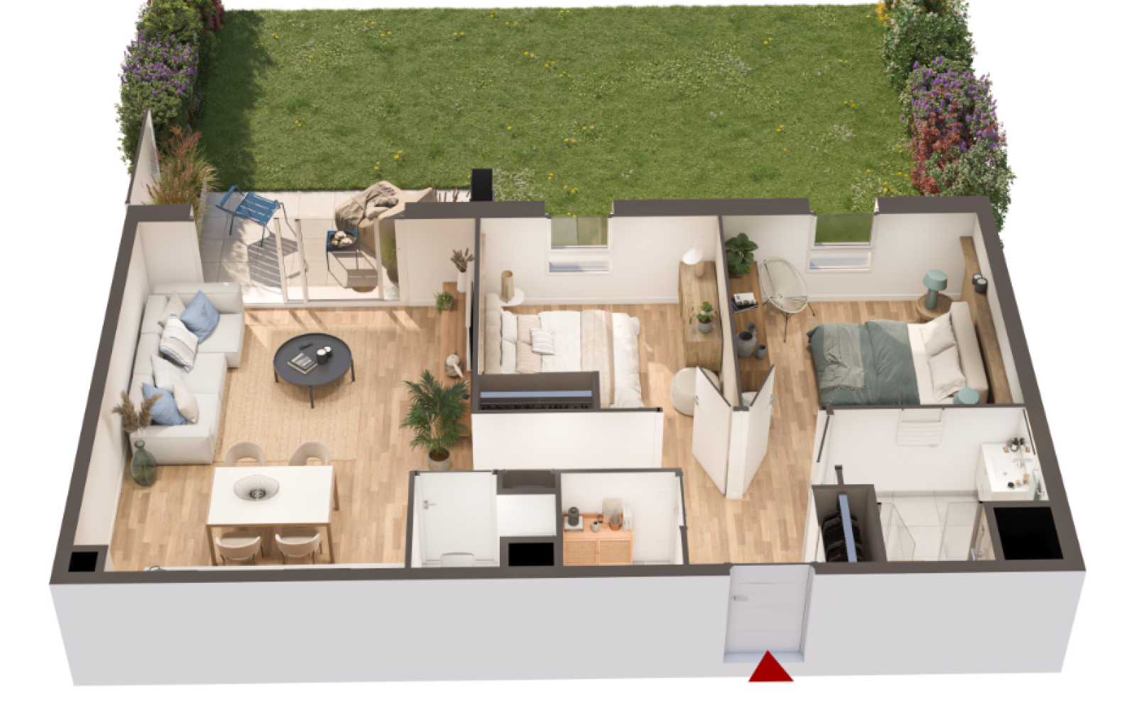 s’ouvrant sur l’extérieur grâce à son jardinet privatif, idéal pour réunir votre famille, vos amis.