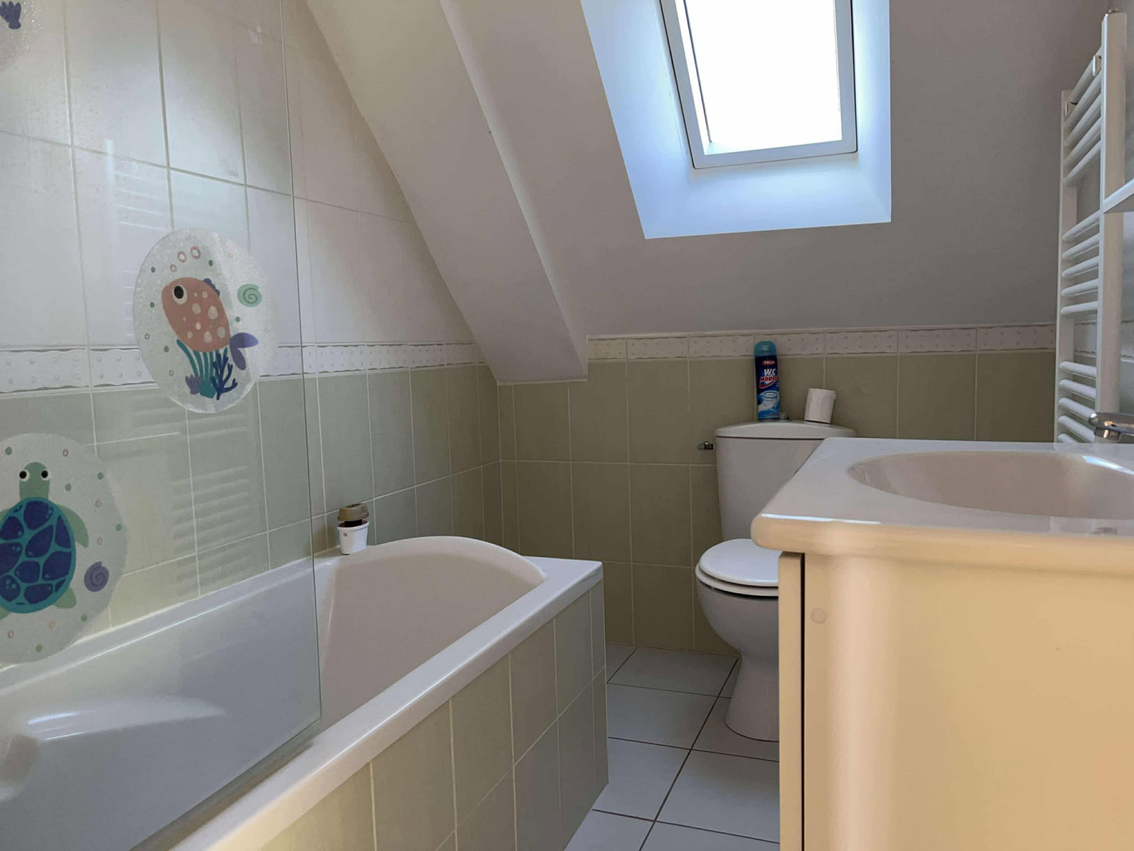 À l'étage 2 grandes chambres et une salle de bains avec wc.